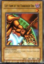 (Spellcaster / Effect) An automatic victory can be declared by the player whose hand contains this card together with the Left Leg / Right Leg / Left Arm / Right Arm of the Forbidden One.